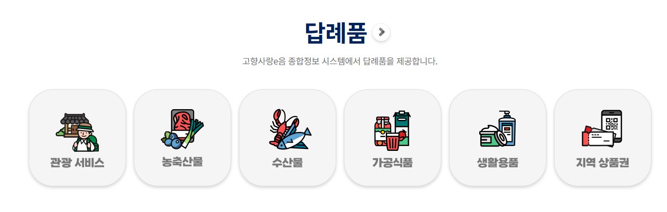 - 답례품을 받을수 있습니다: 답례품은 아래그림처럼 다양하니 선택해서 받을 수 있습니다.