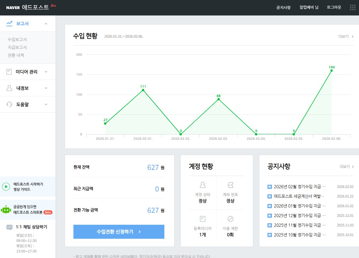 2. 네이버 애드포스트 (AdPost): 네이버페이 전환 or 지급 보류
