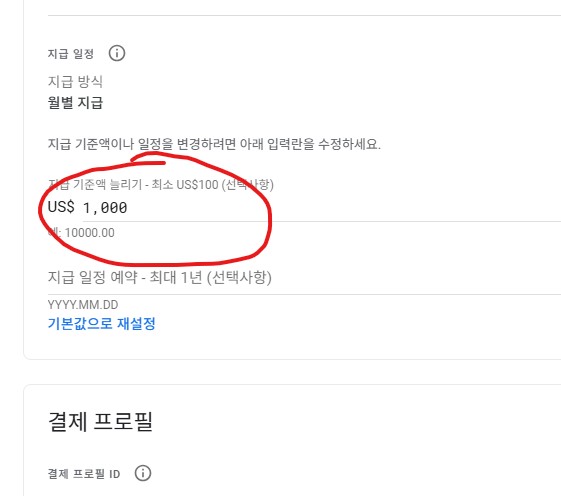 - 애드센스: 지급 기준액을 $10,000로 높여라.