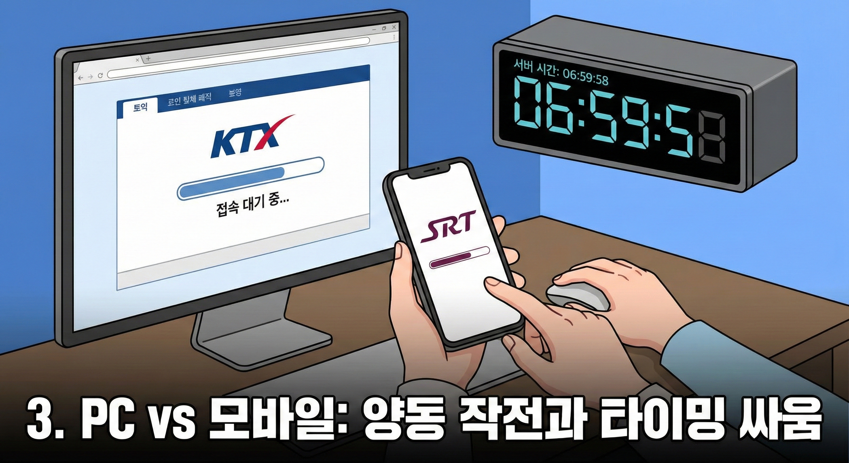 "PC 유선랜이 빠르다", "요즘은 모바일 앱 최적화가 더 잘 되어 있다" 등 의견이 분분했지만, 2026년 설 예매에서도 정답은 '둘 다 준비하는 것'이었습니다.