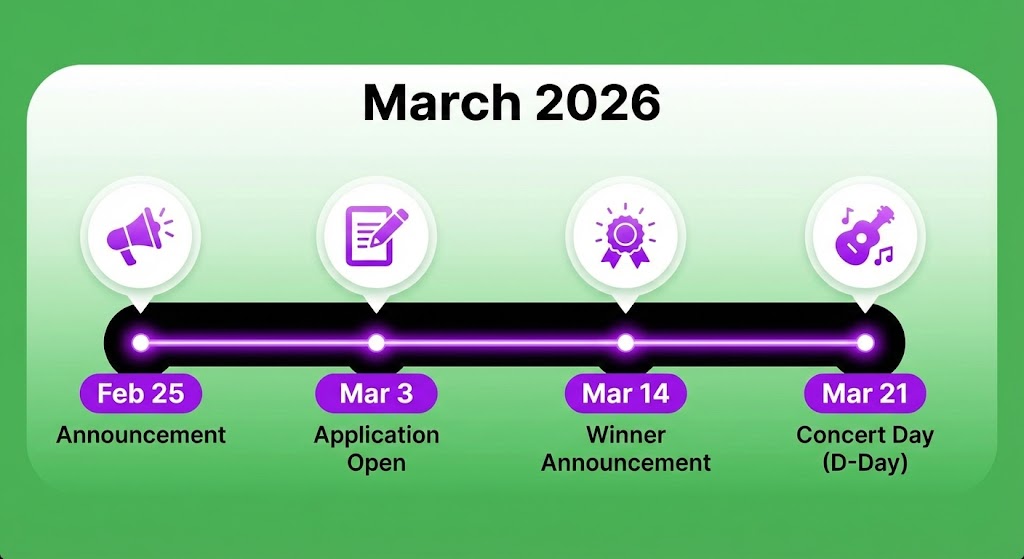 - 2월 말 (D-30 ~ D-25): 공연 공식 공지 및 신청 안내 오픈